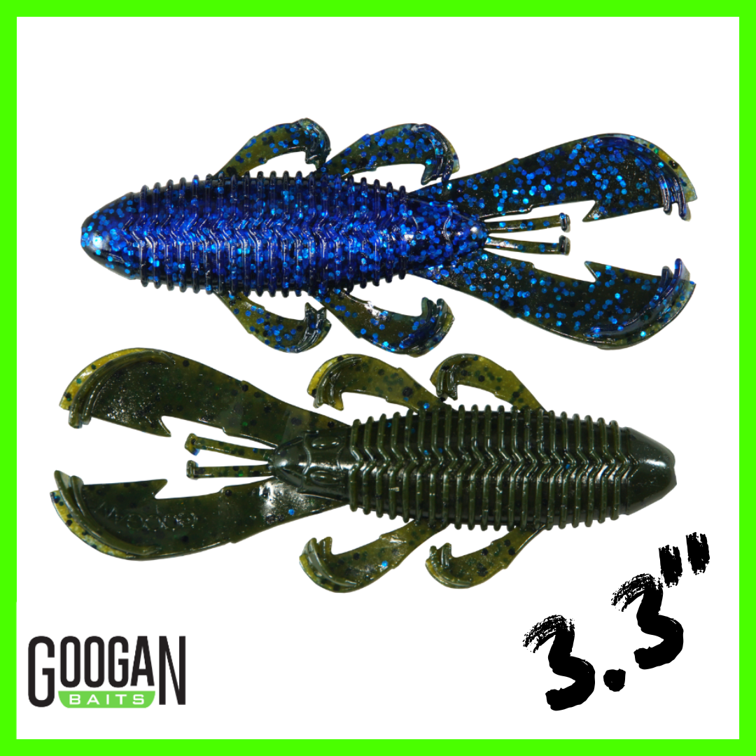 ALABAMA CRAW, BAMA BUG, BLACK BLUE FLAKE, BLUE BABY, CALIFORNIA CRAW, GREEN PUMPKIN, GREEN PUMPKIN PURPLE, JUNEBUG, NATURAL, OKEECHOBEE CRAW, PEARL, SPRAYED LETTUCE, SUMMER CRAW, WATERMELON RED